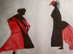 2009'Lady silhouetten'....... Aquarel met een zilveren achtergrond, ........40 x 30 cm .......Eerdaags komt er een betere foto, deze moest ik te veel afsnijden...